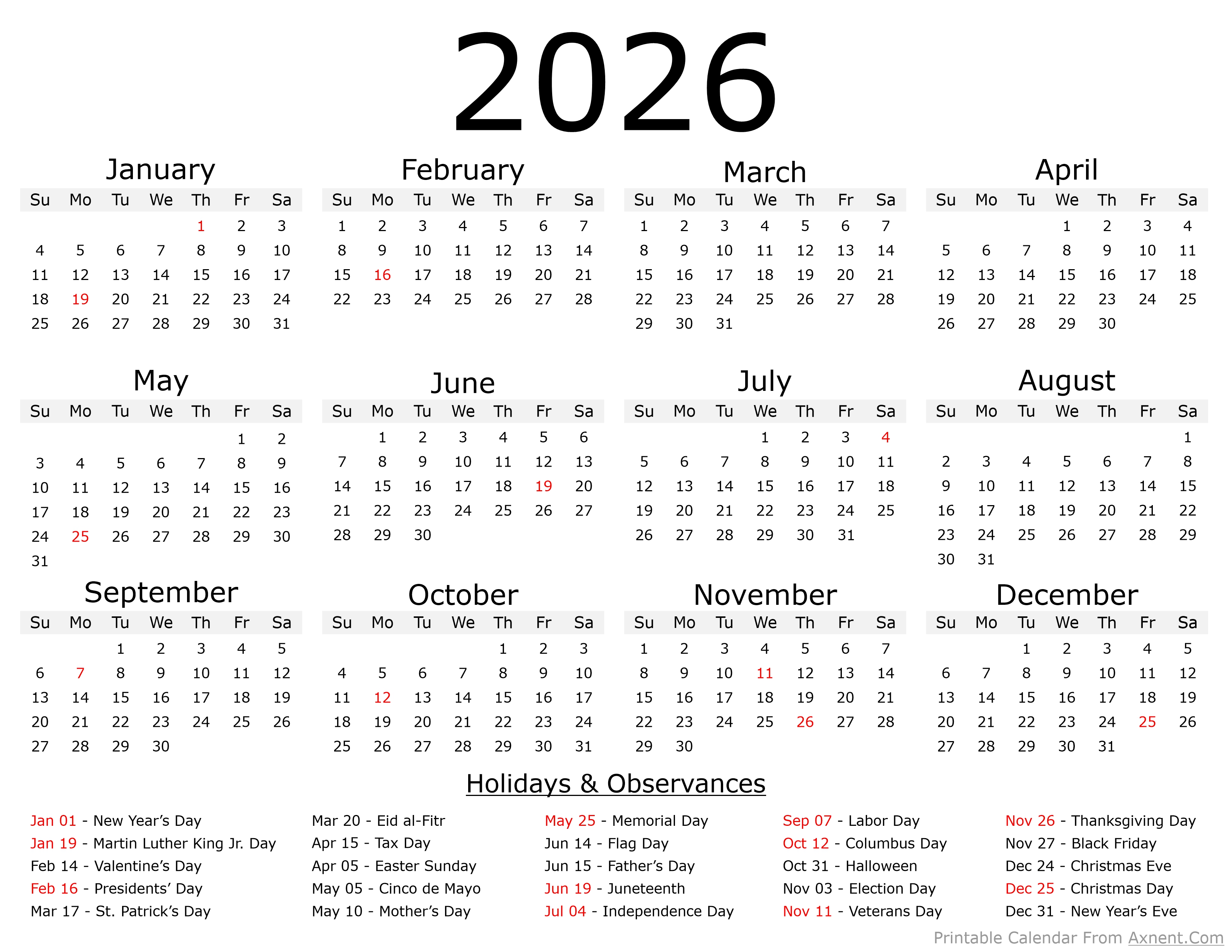 2026 Calendar
