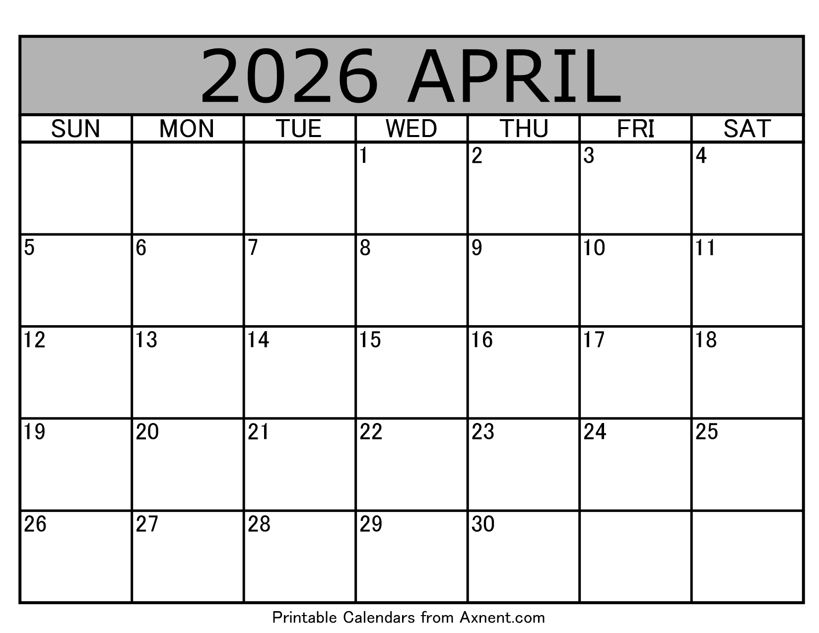 April 2026 Calendar Template