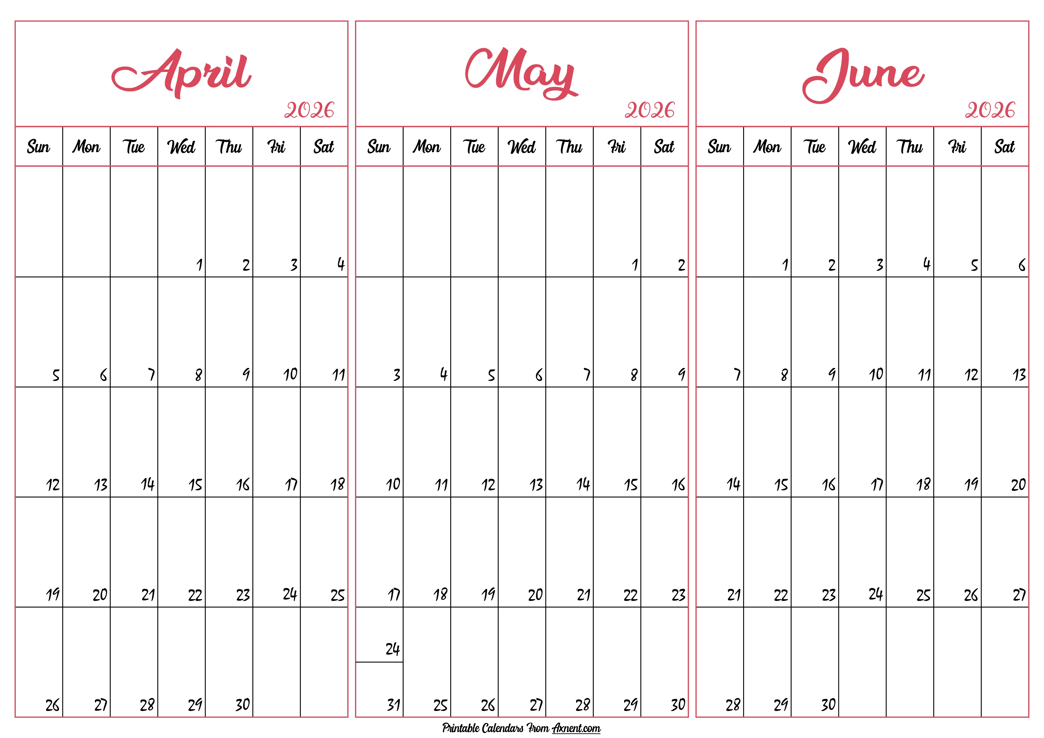April May June 2026 Calendar