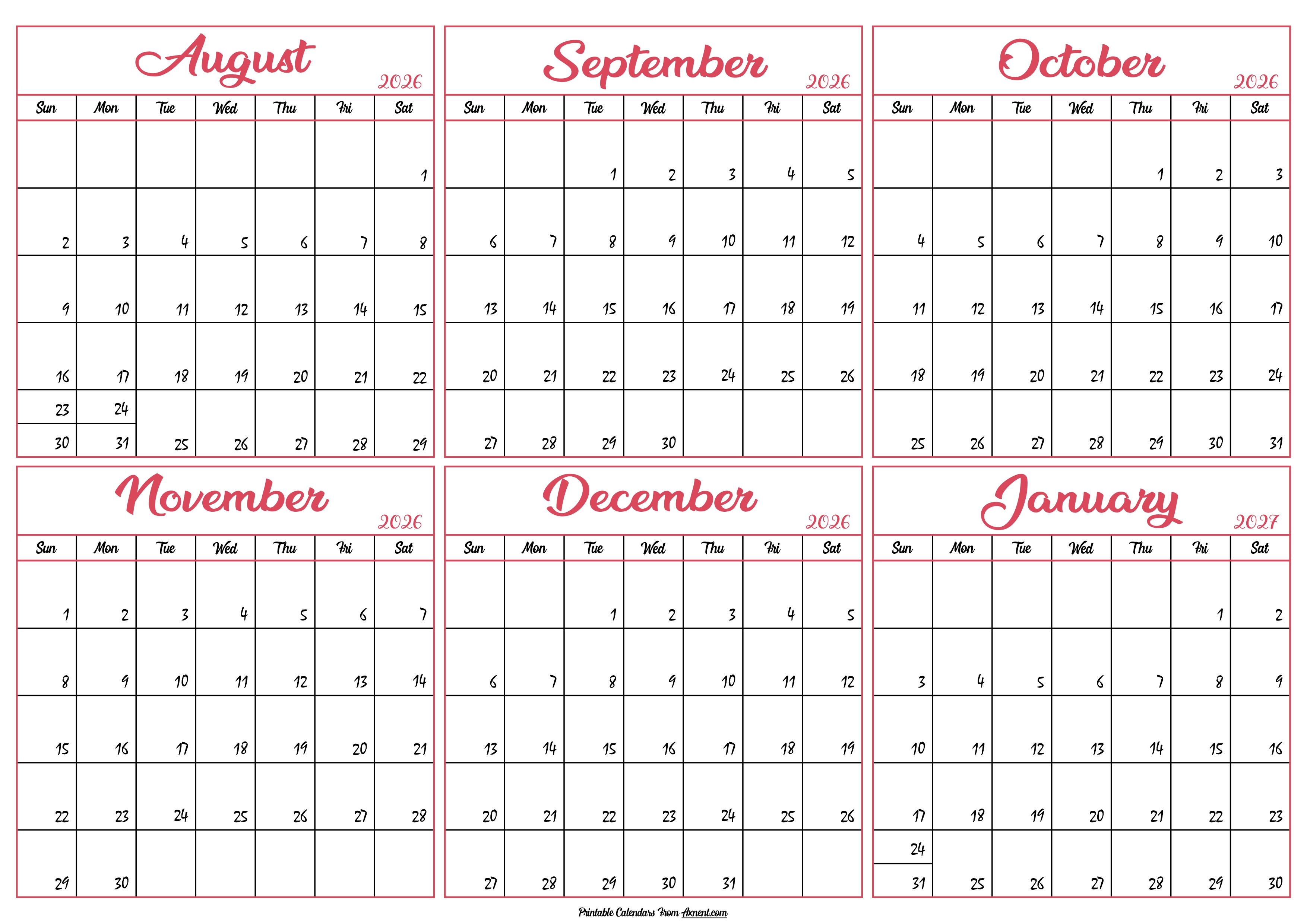 January 14, 2026 Calendar 2026 August to January 2027 Posted by Admin Calendar 2026 August to January 2027