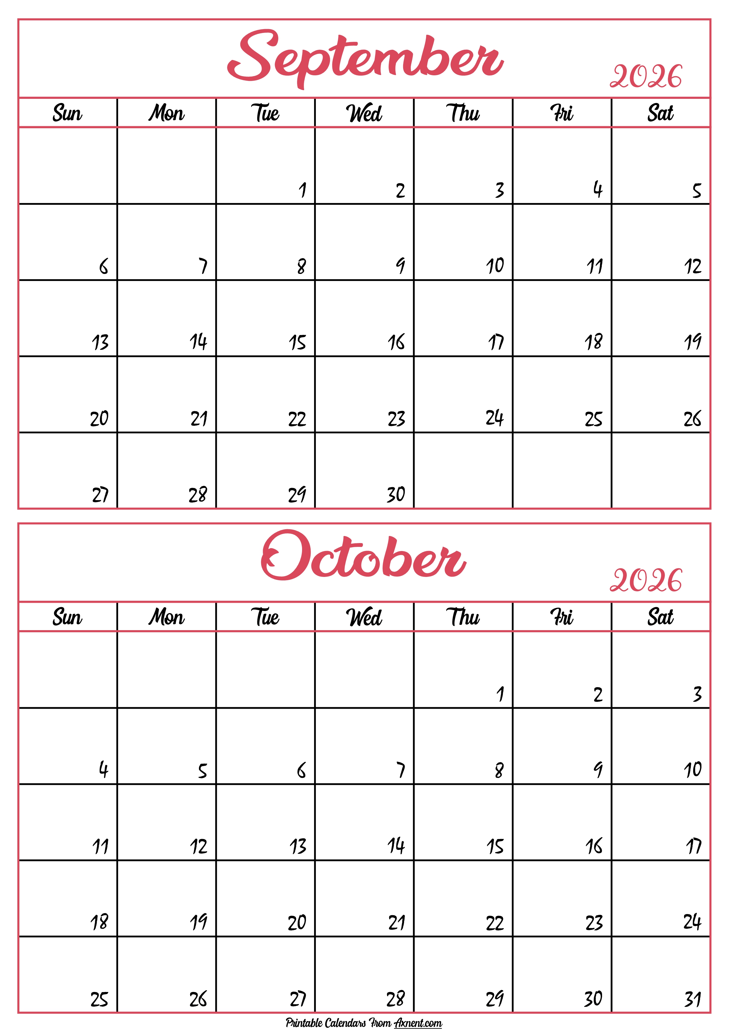 Calendar 2026 September October