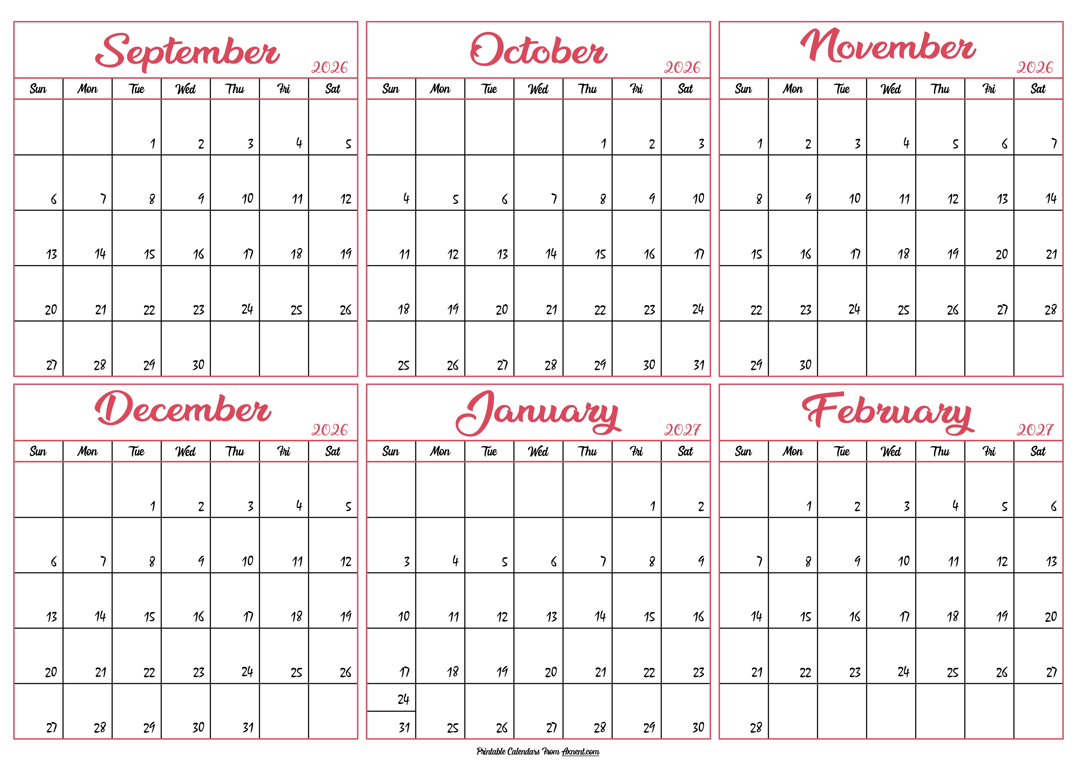 January 14, 2026 Calendar 2026 September to February 2027 Posted by Admin Calendar 2026 September to February 2027