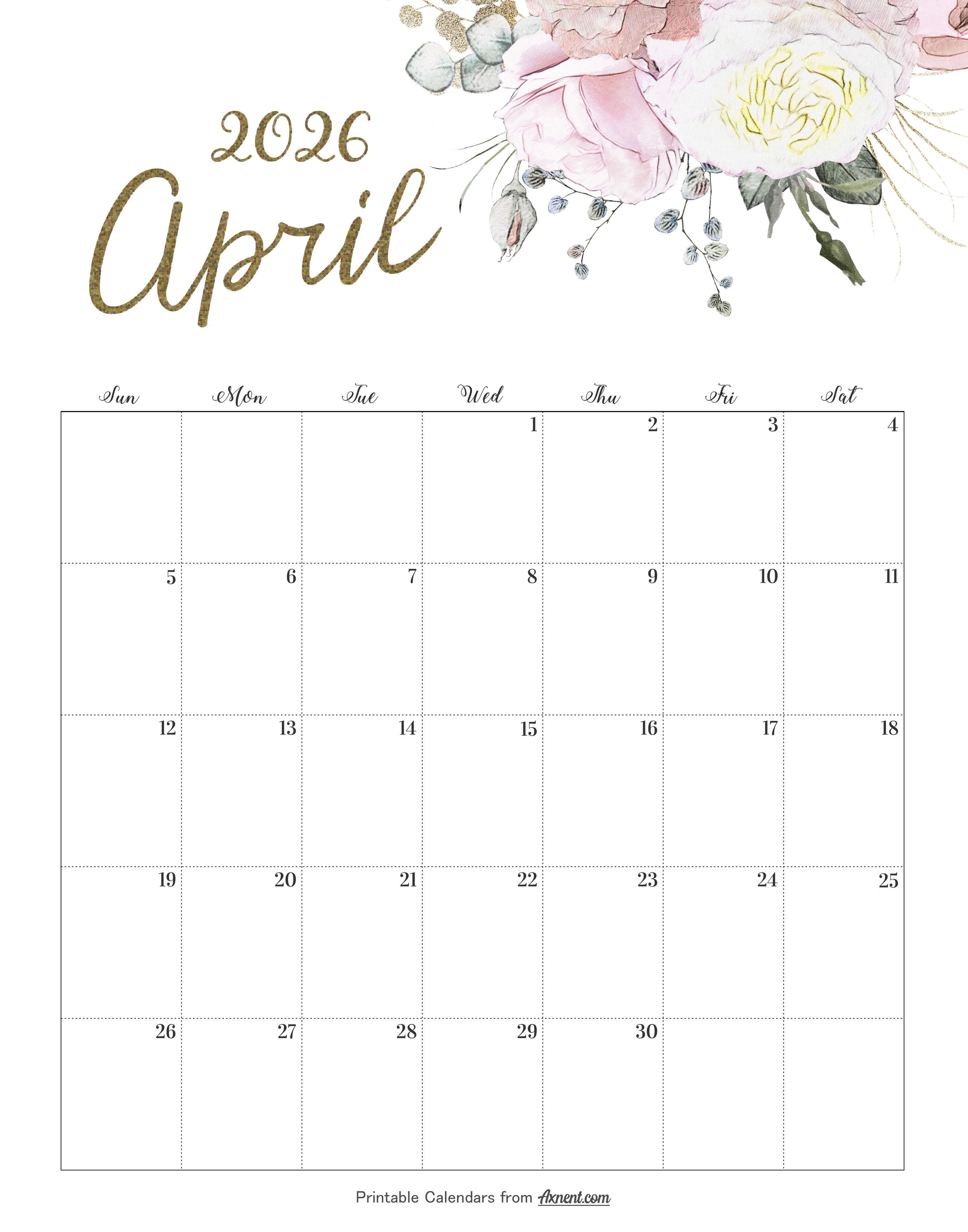 Calendar April 2026 Cute