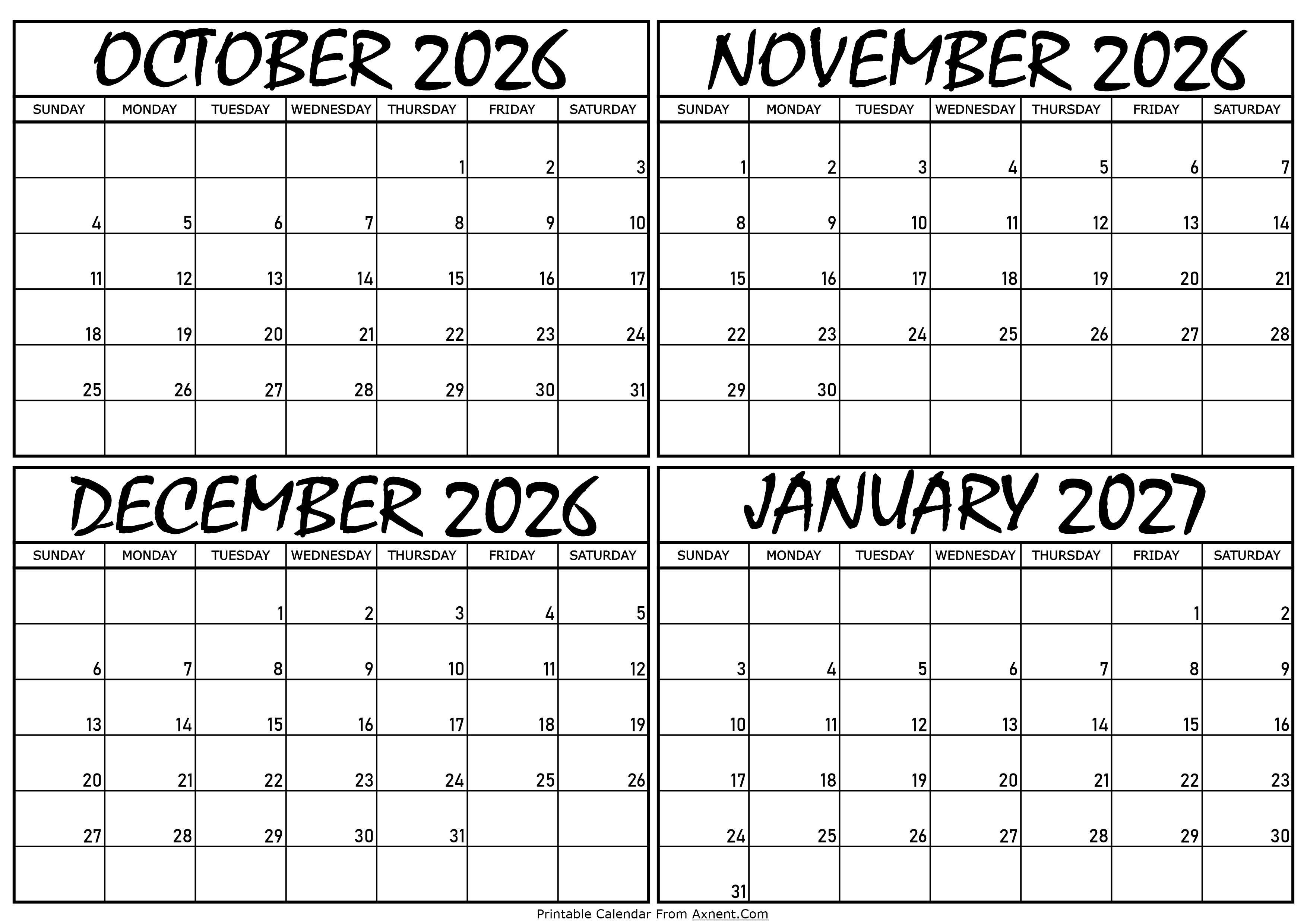 January 17, 2026 Calendar October 2026 to January 2027 Posted by Admin Calendar October 2026 to January 2027