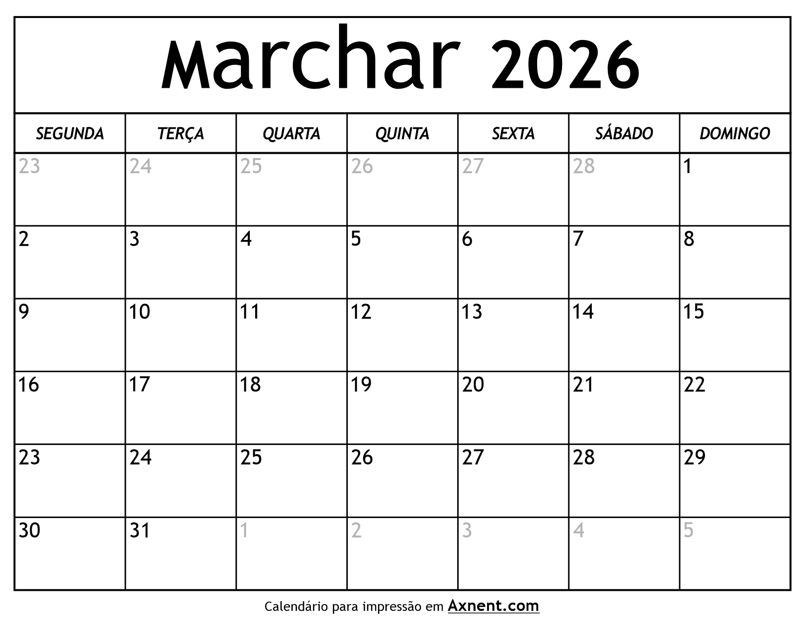 Calendário De Marchar De 2026