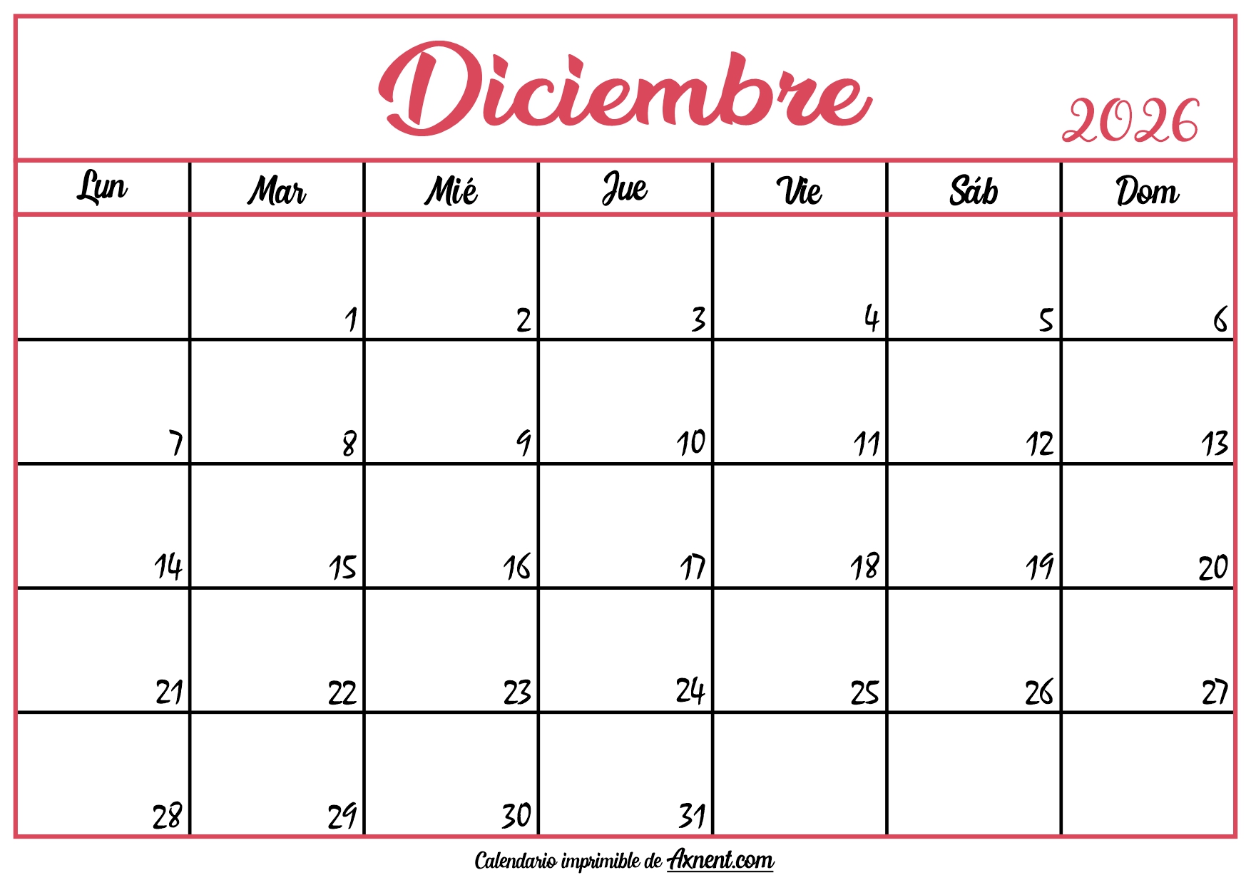 March 5, 2026 Calendario En Blanco Diciembre 2026 Posted by Admin Calendario En Blanco Diciembre 2026