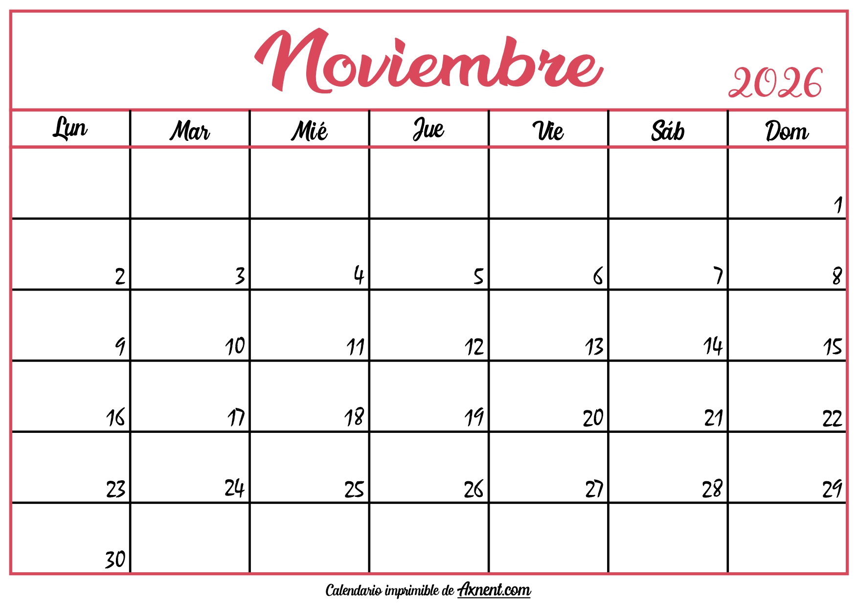 March 5, 2026 Calendario En Blanco Noviembre 2026 Posted by Admin Calendario En Blanco Noviembre 2026