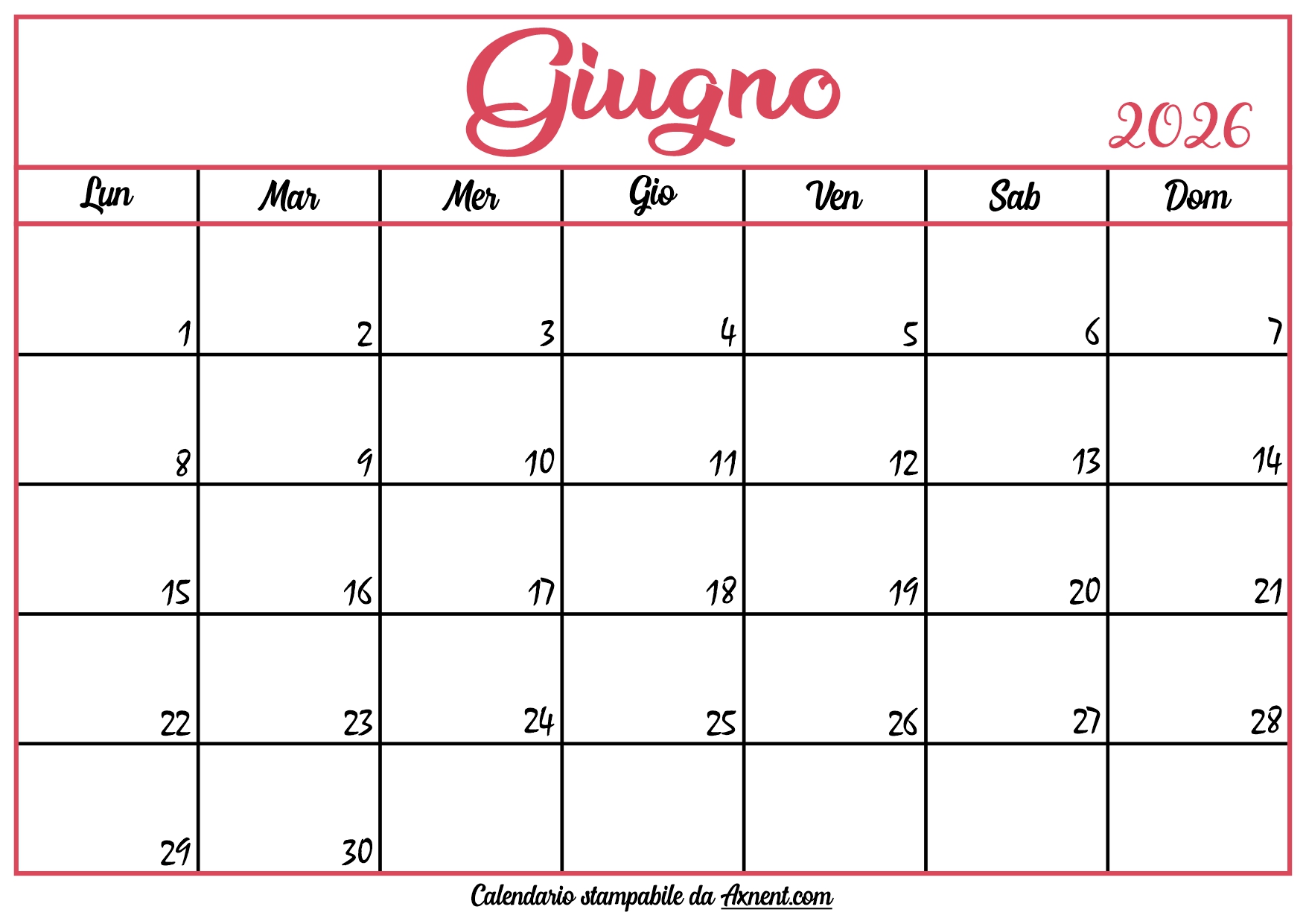 September 29, 2025 Calendario Giugno 2026 Stampabile Posted by Admin Calendario Giugno 2026 Stampabile