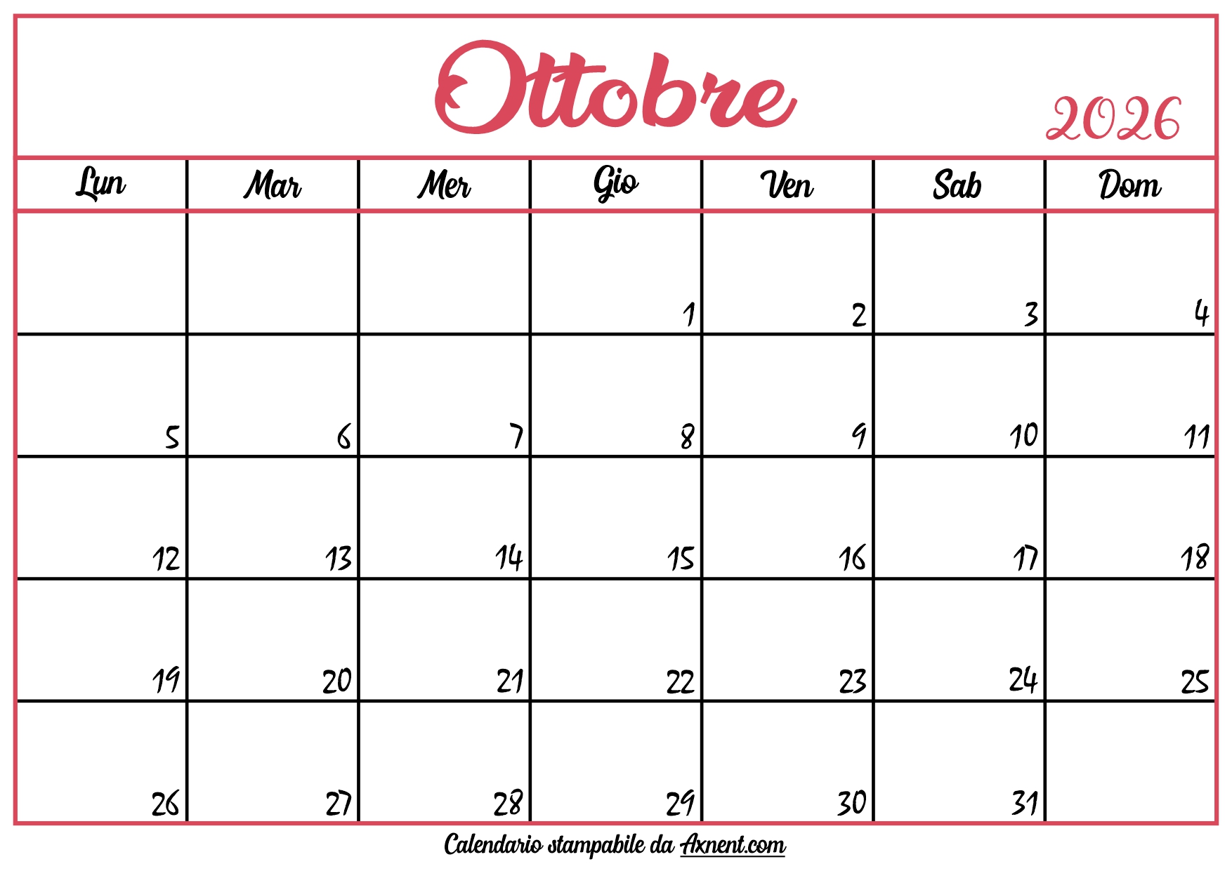 January 15, 2026 Calendario Ottobre 2026 Stampabile Posted by Admin Calendario Ottobre 2026 Stampabile