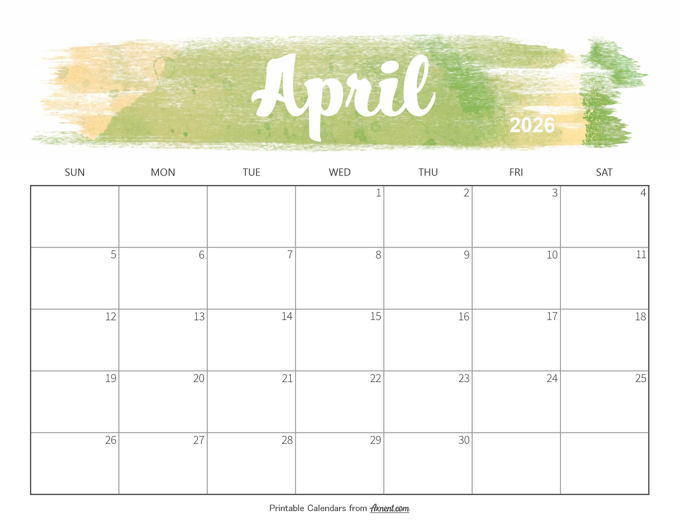Cute April 2026 Calendar Printable