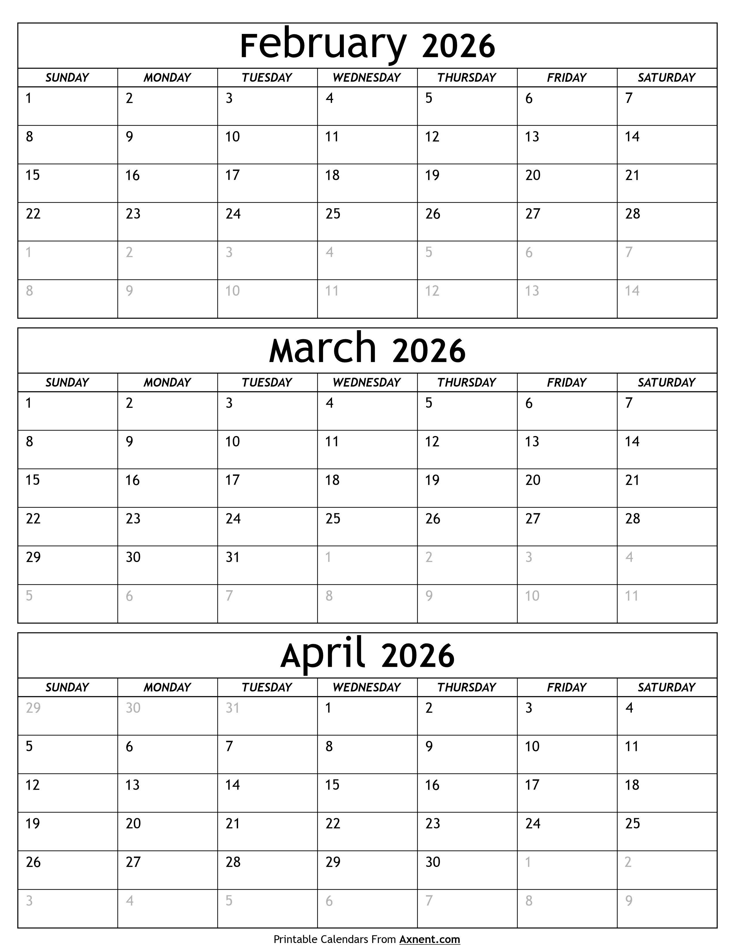February to April 2026 Calendar