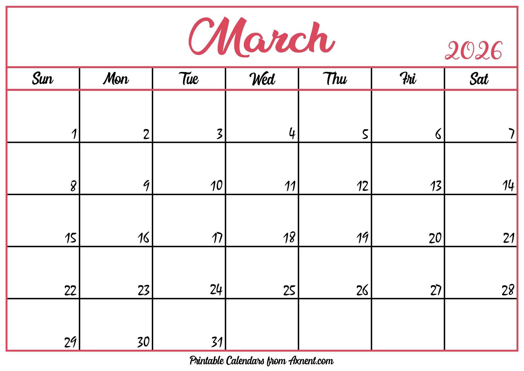 Free March Calendar 2026