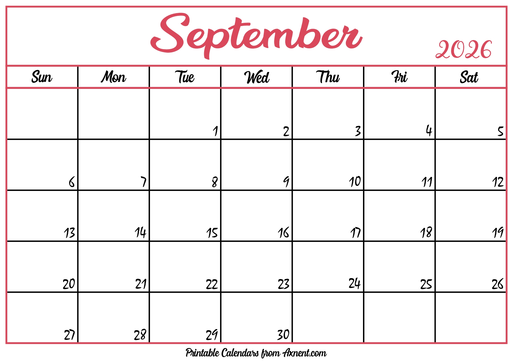 Free September Calendar 2026