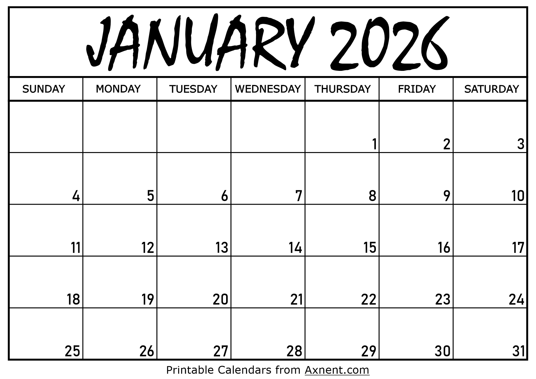 January 2026 Calendar Printable