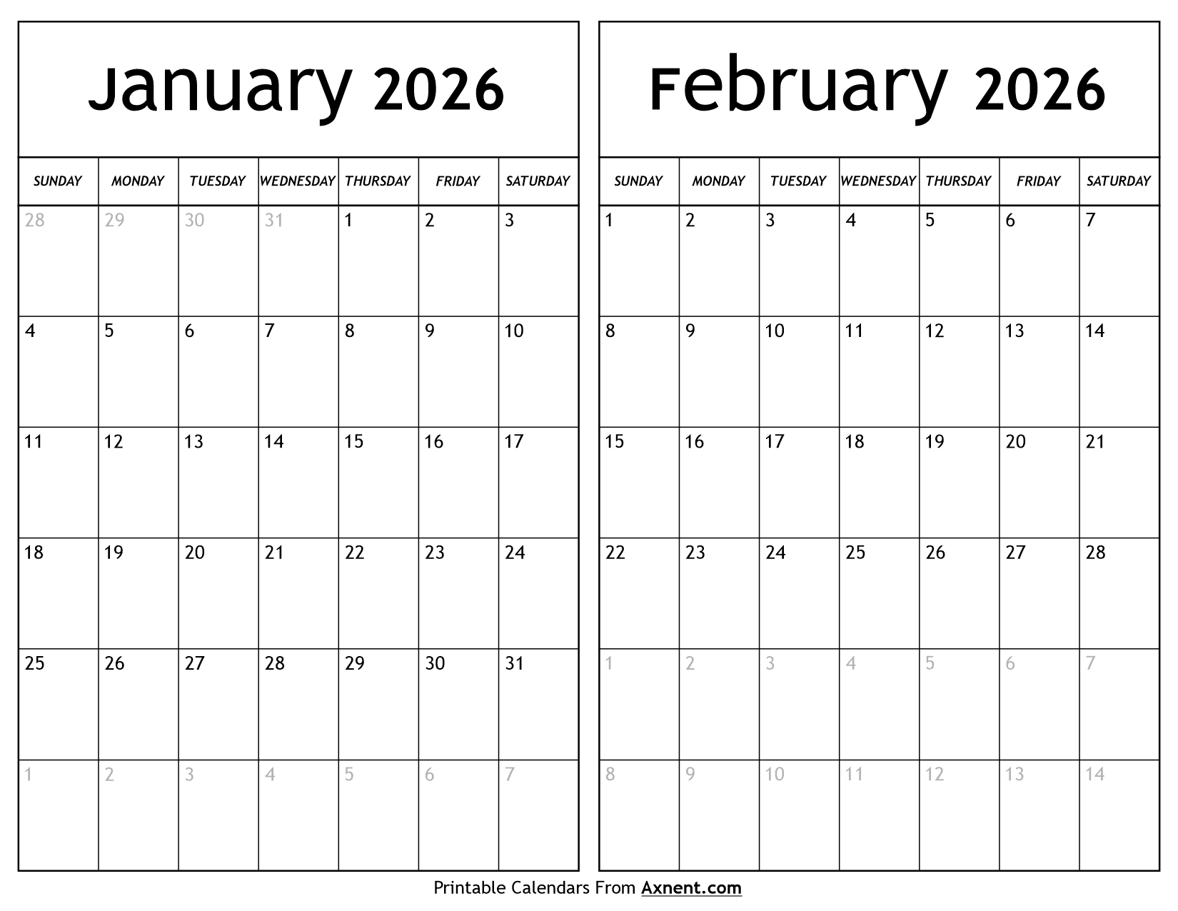 January February 2026 Calendar