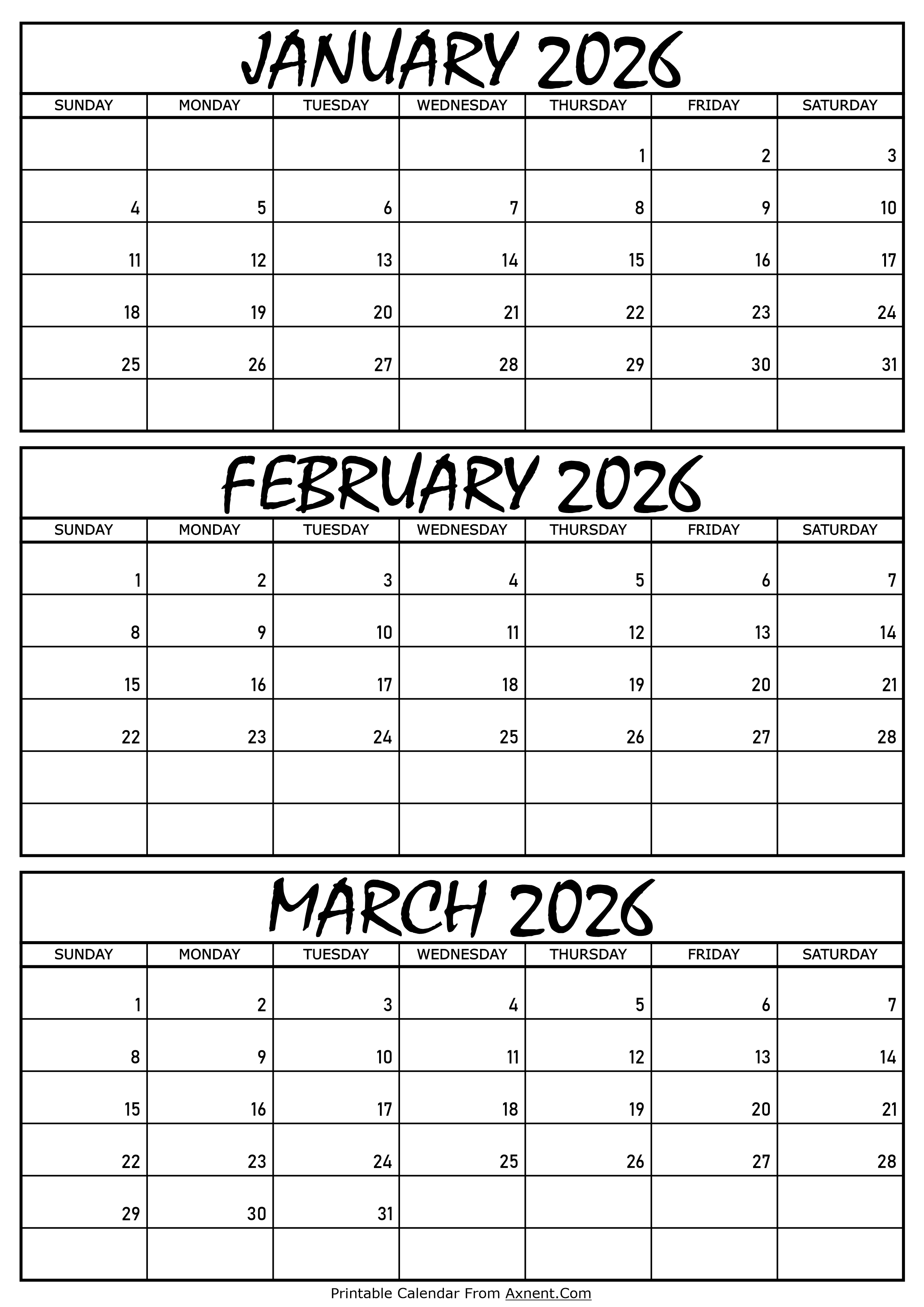 July 17, 2025 January February and March Calendar 2026 Posted by Admin January February and March Calendar 2026