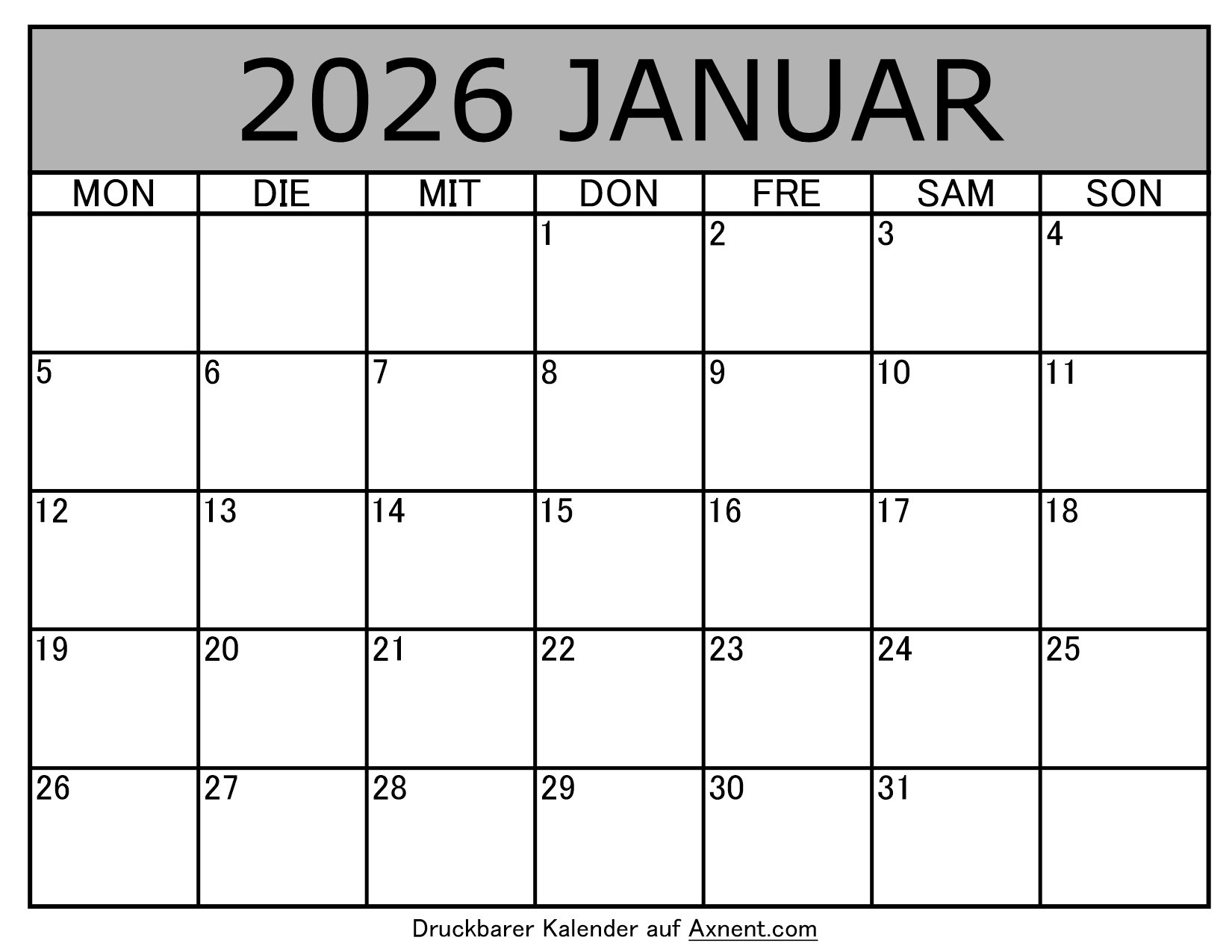 July 21, 2025 Kalender Januar 2026 zum Ausdrucken Posted by Admin Kalender Januar 2026 zum Ausdrucken