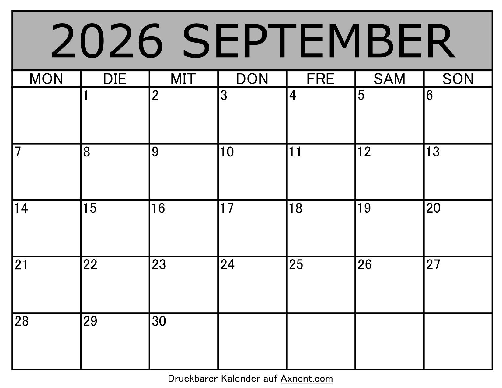 January 15, 2026 Kalender September 2026 zum Ausdrucken Posted by Admin Kalender September 2026 zum Ausdrucken