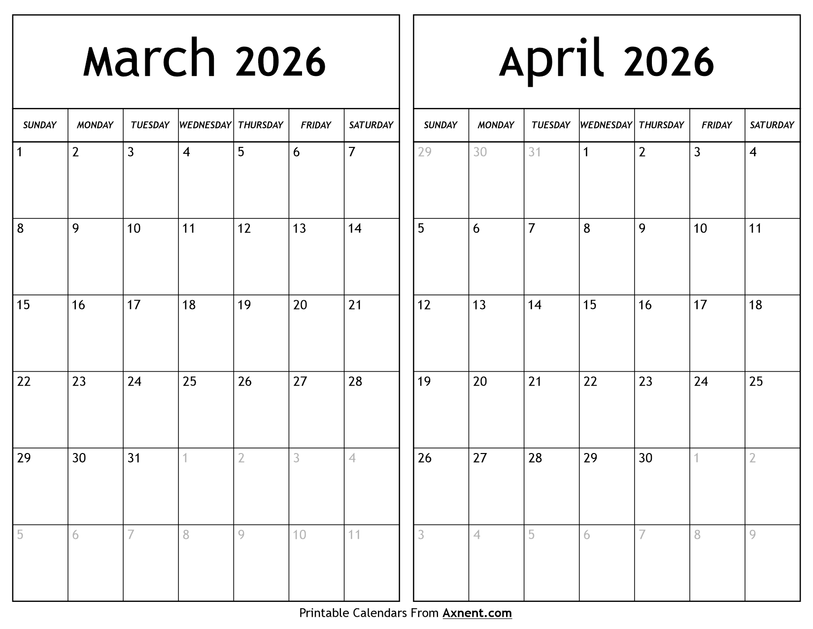 March April 2026 Calendar