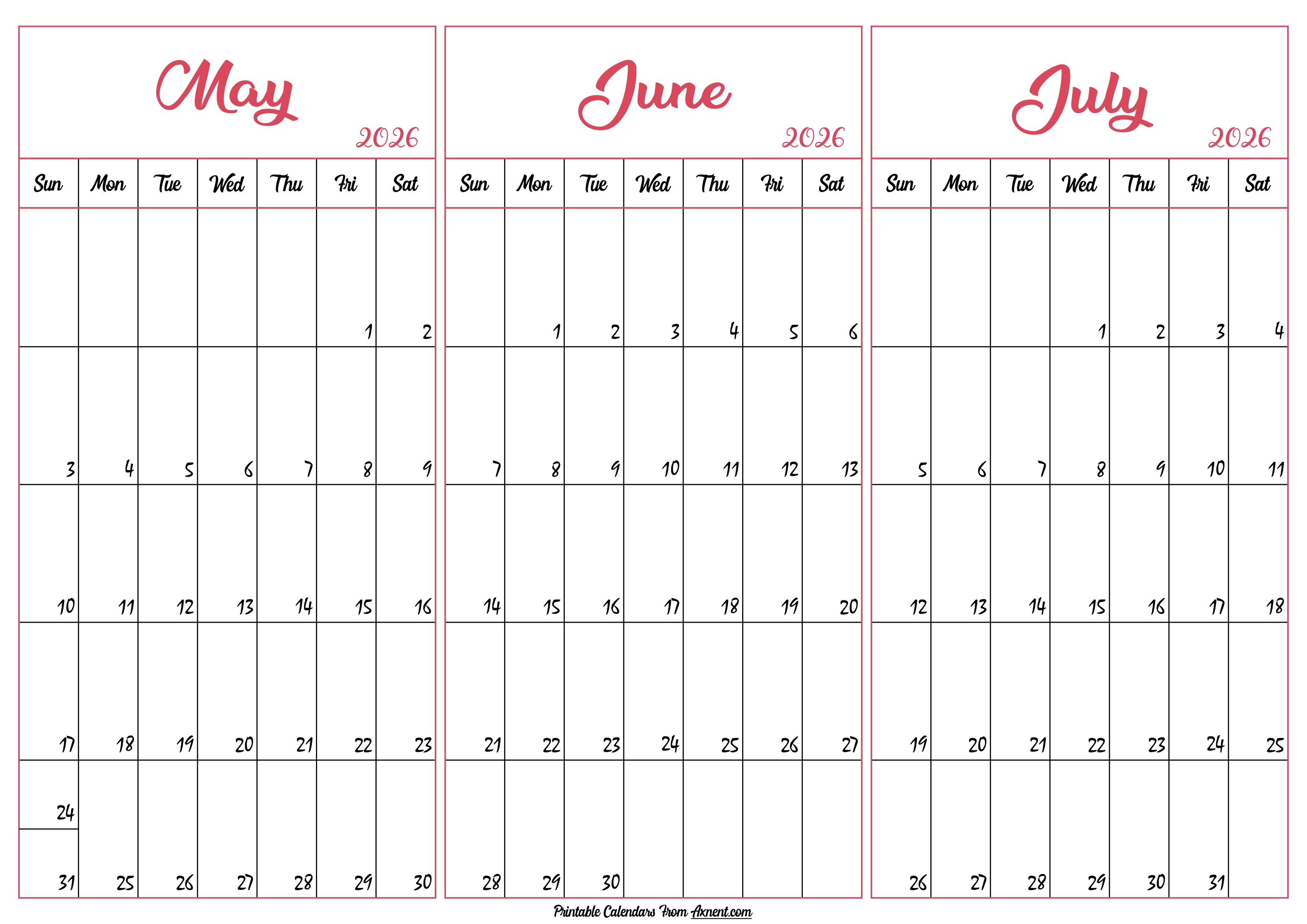 May June July 2026 Calendar