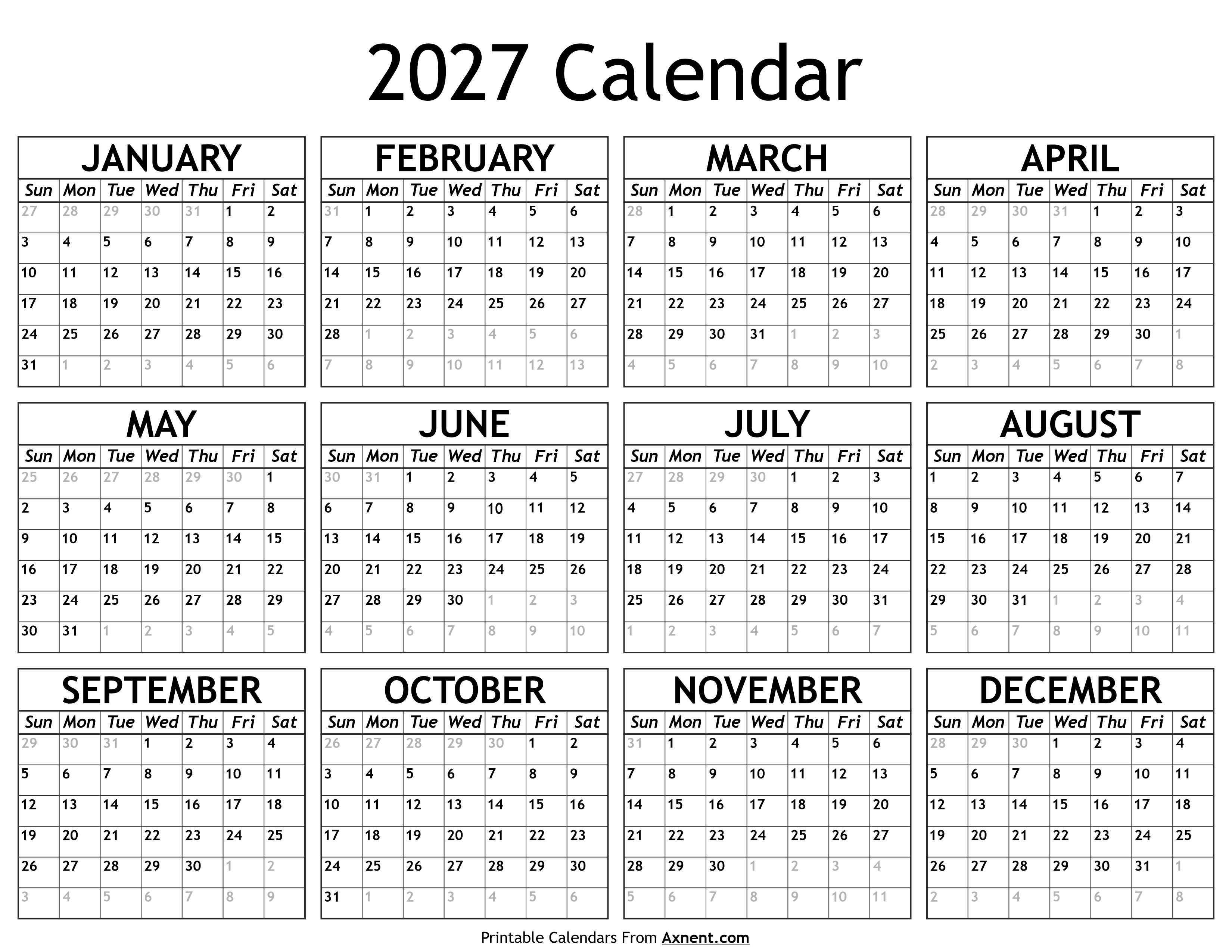 Printable 2027 Calendar