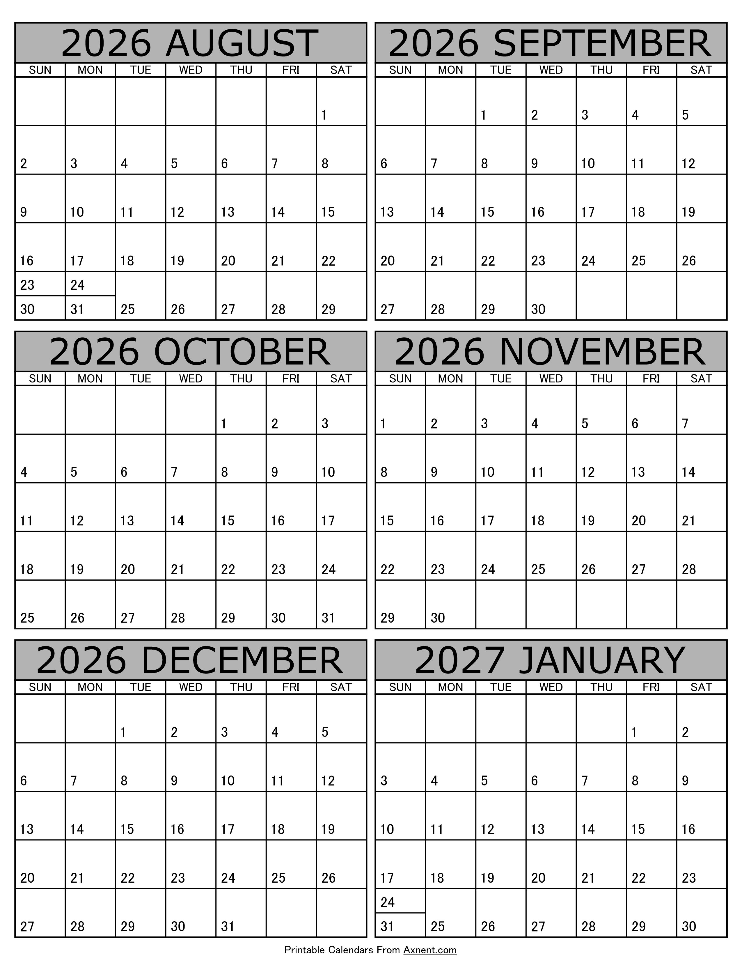 January 14, 2026 Printable August 2026 to January 2027 Calendar Posted by Admin Printable August 2026 to January 2027 Calendar