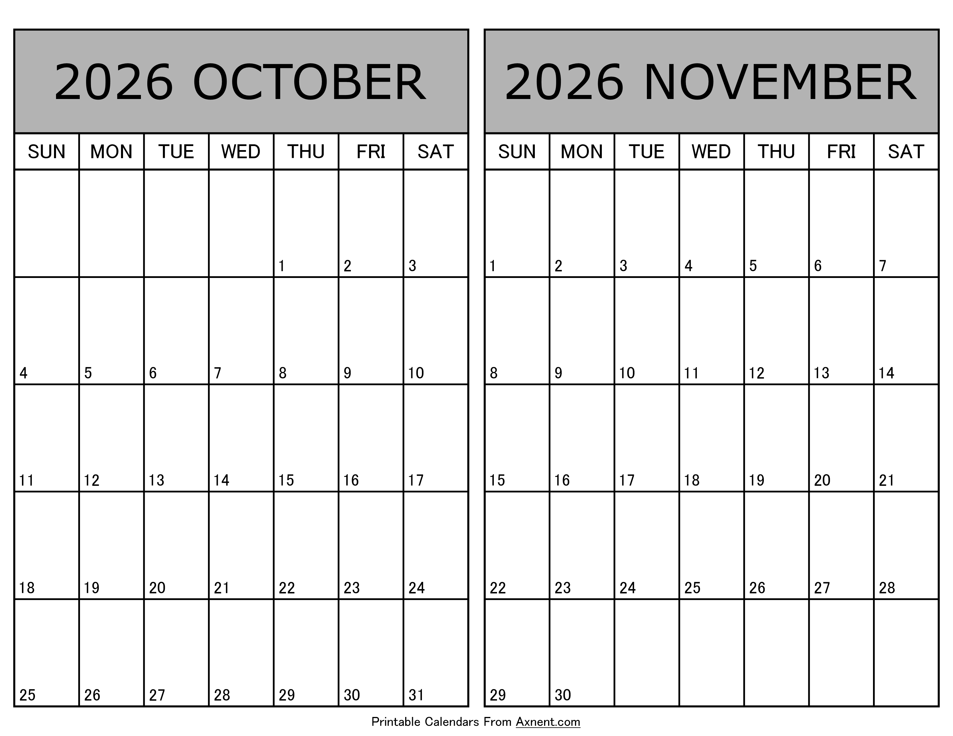 January 17, 2026 Printable October November 2026 Calendar Posted by Admin Printable October November 2026 Calendar