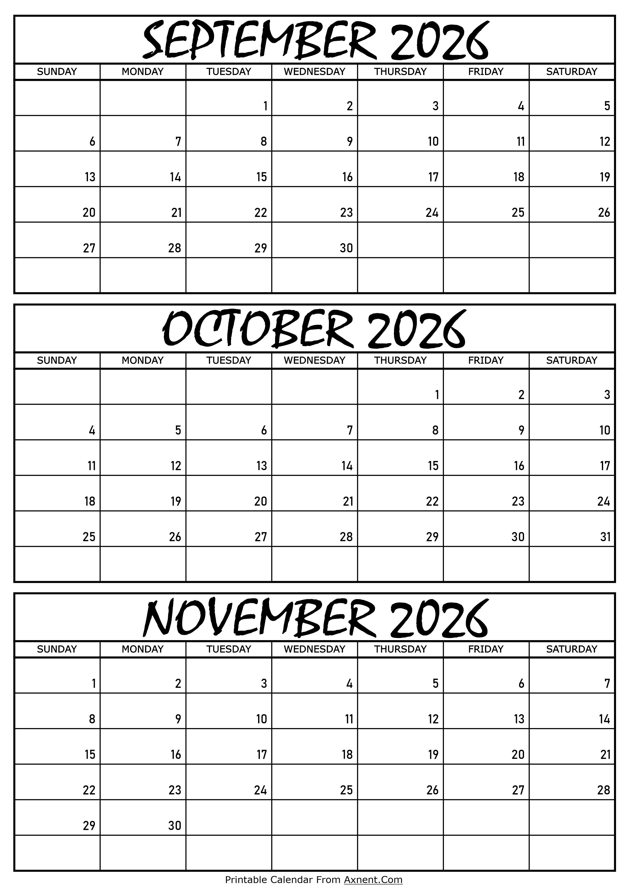 January 14, 2026 September October and November Calendar 2026 Posted by Admin September October and November Calendar 2026